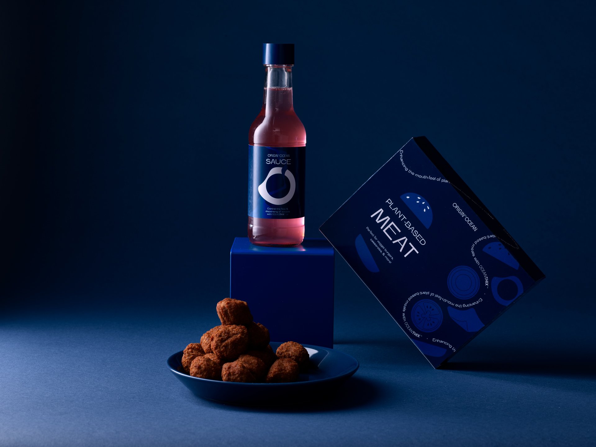 The nine physical mockups presented in the photos were displayed at Food Ingredients Europe (FI-EU) in 2024 at our booth, exploring the different food application possibilities of alginate. We asked the question “Where could regenerative alginate make the biggest impact?” I designed the mockups from start to finish, creating the designs and dielines in Illustrator, printing them, and then assembling them.