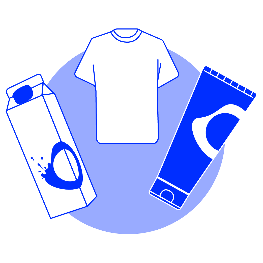 Six products (plant-based milk carton, plant-based meat packaging, ice cream box, gum packaging, candy bag, yogurt cup) were printed on thick paper, and three products (smoothie, sauce, jam) were stickers on glass bottles and jars.